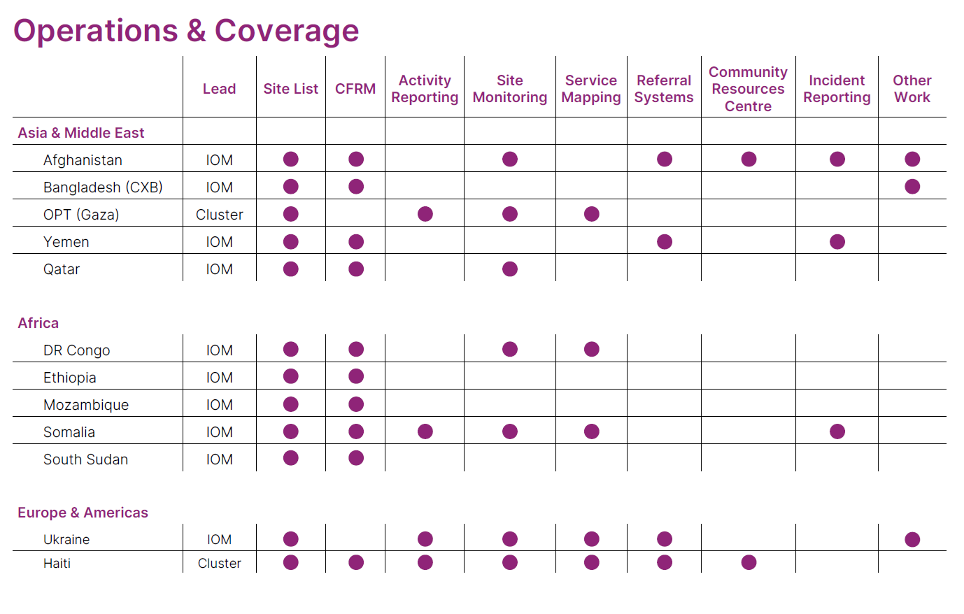 Zite Manager is a programme run by IOM’s Global CCCM unit that aims to improve humanitarian responses to displacement crises through the combination of innovative technology, good programming practice, and scalable and contextualizable tools. The overall aim of the programme is to ensure the operational accountability of humanitarian actors to affected populations, by channelling community feedback, monitoring data, and service mapping data into humanitarian coordination & decision-making structures, utilizing CCCM’s coordination mandate to facilitate multi-sector programming and producing robust analytical and advocacy products.